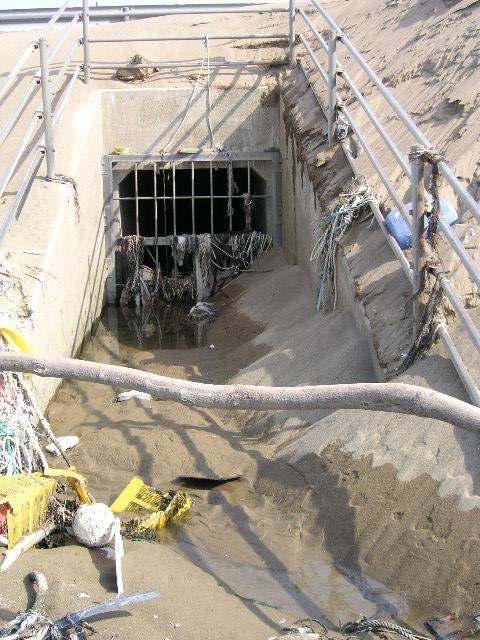 浜辺にて。用水路なんだろうけど、怪しく見える。